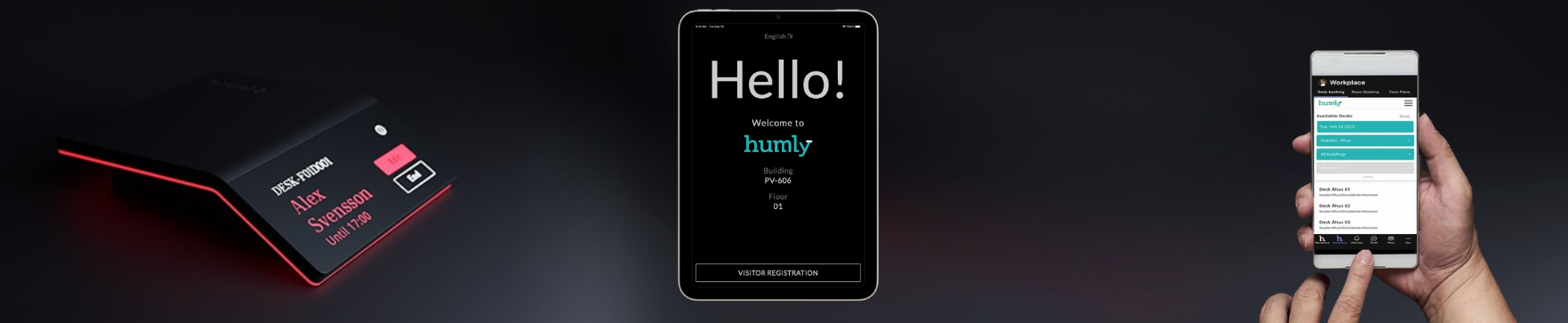 Das Humly Booking Device ist ein kompaktes und intelligentes Buchungsterminal für spontane Arbeitsplatz- und Meetingraumreservierungen direkt vor Ort. Mitarbeitende können sich per RFID oder NFC kontaktlos einchecken, freie Räume und Arbeitsplätze in Echtzeit prüfen und sofort buchen – ganz ohne App oder zusätzliche Software.